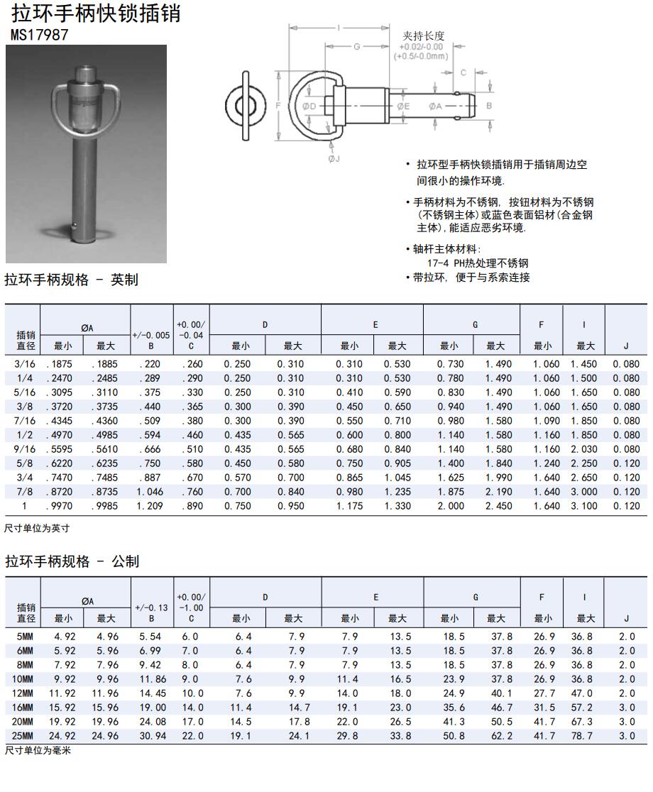 拉環(huán)手柄快鎖插銷