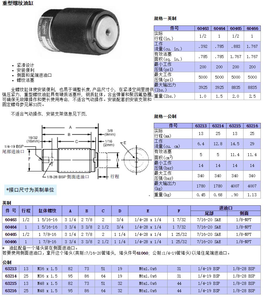 重型螺紋油缸