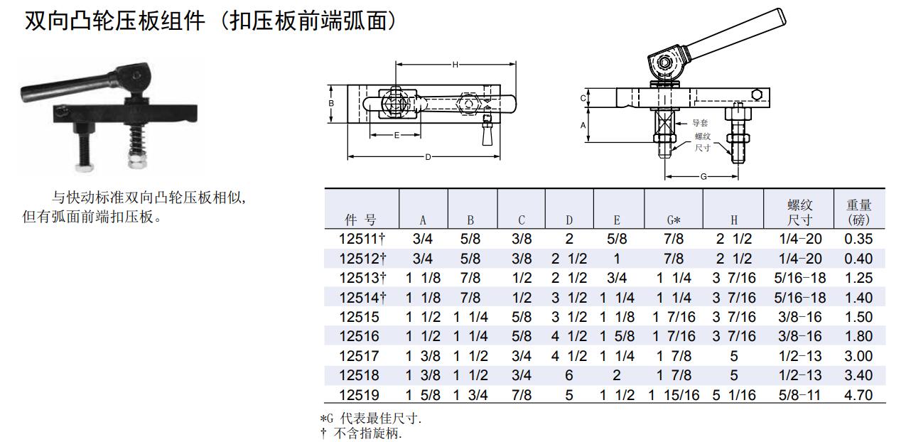 雙向凸輪壓板組件 (扣壓板前端弧面)